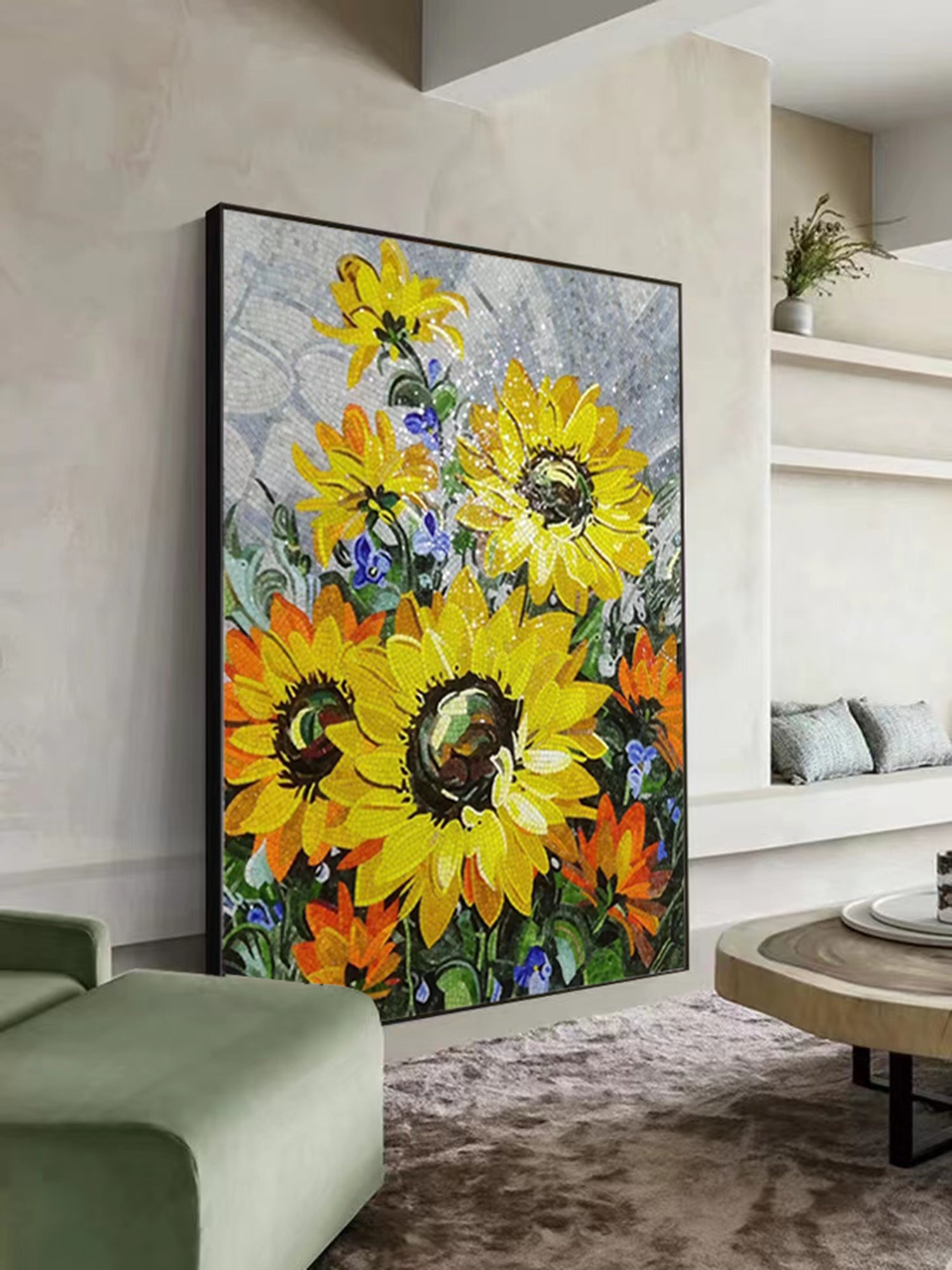A Mosaic Art Sunflower Glass materials Custom made size AJ41
